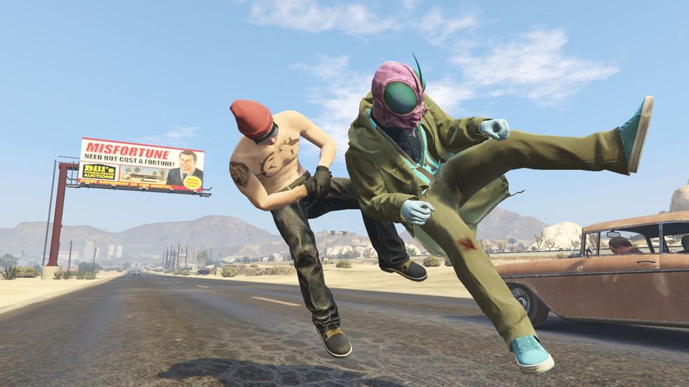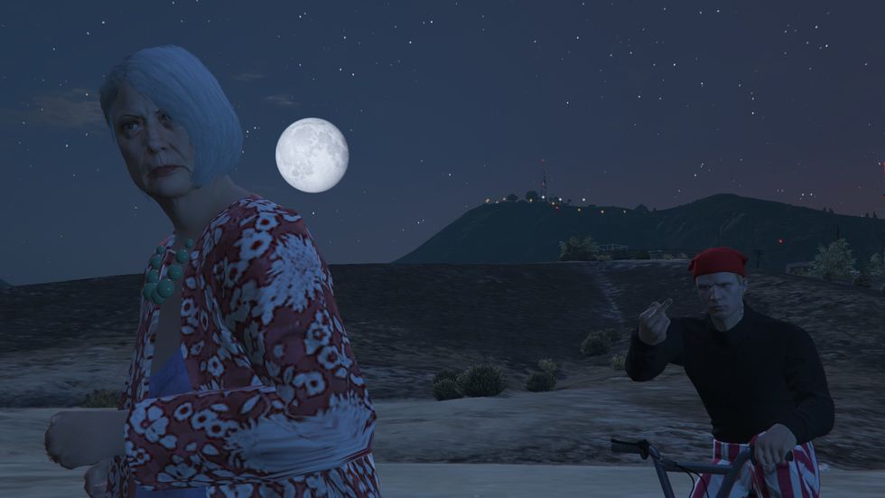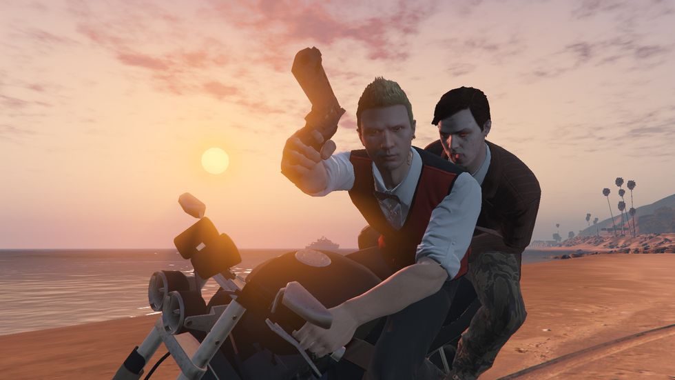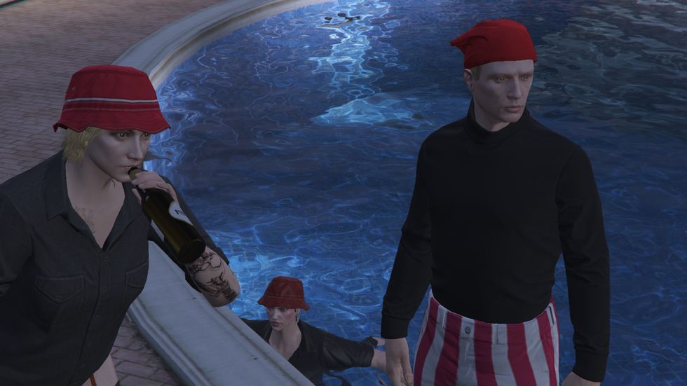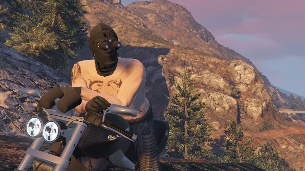 I play Grand Theft Auto Online because I need to buy and try on clothes without spending real money. I take a lot of screenshots of this game on my computer. Here are some of my favorites. My graphics settings aren't the best, but I'm a simple boy, so I make do.