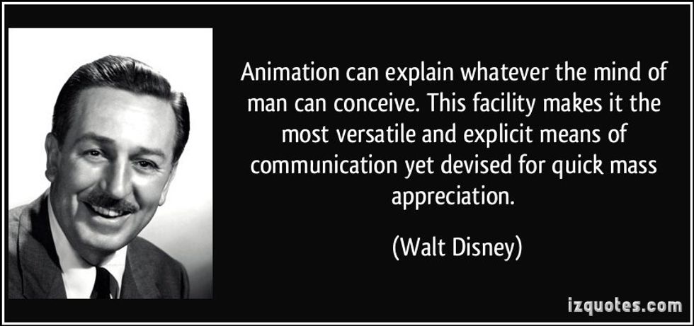 For those of you who are still skeptical of the power, importance, and relevance of animation, all you need to understand then is that animation is a medium for transmitting ideas and perspectives; at its most basic level, animation is just another way to view our world. Walt Disney put it best when he said,