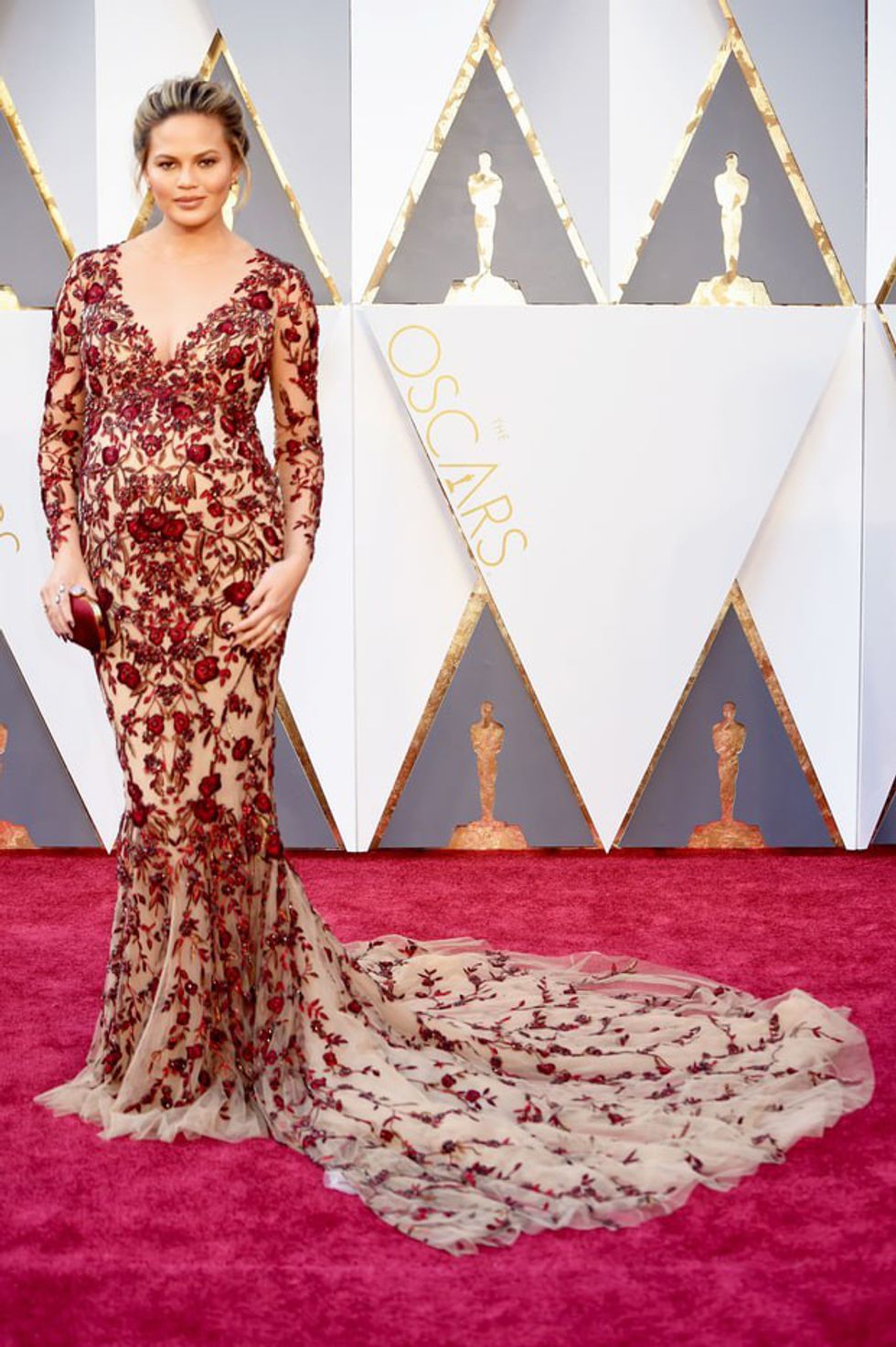 Everyone who knows me knows that if I could marry Chrissy Teigen I would, so it's not a surprise she made it on this list. I love this dress because I have literally never seen anything even remotely like it. It's also not a typical choice for someone who is halfway through their pregnancy. The flowers on this dress are so pretty and just the right size and amount so as not to be too much. Chrissy definitely went bold by wearing a sheer and detailed gown, but I think it paid off.
