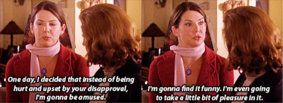 Lorelai sets the example for Rory when she stops worrying about her mother’s approval. Lorelai knows that she is a good parent to her daughter and has made good choices in her life, but in doing this she has also learned that pleasing everyone just isn’t possible. At the end of the day Lorelai knows that the only person’s validation she needs is her own.