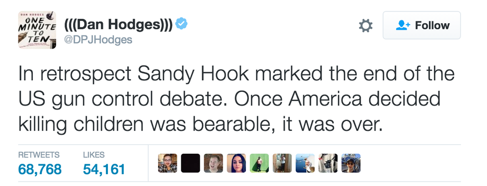 Gun control is never something I have taken a strong opinion towards. I don't own a gun, I've never had any interest in owning one, so I never understood the big deal about letting people have them, I mean it's their second amendment right, right? It's a very touchy subject and it ruffles a lot of feathers. And after the events of the past 36 hours, I've finally realized that it's good that it ruffles a lot of feathers. This is an important issue, one of the most important ones of our generation, and it needs to be addressed.