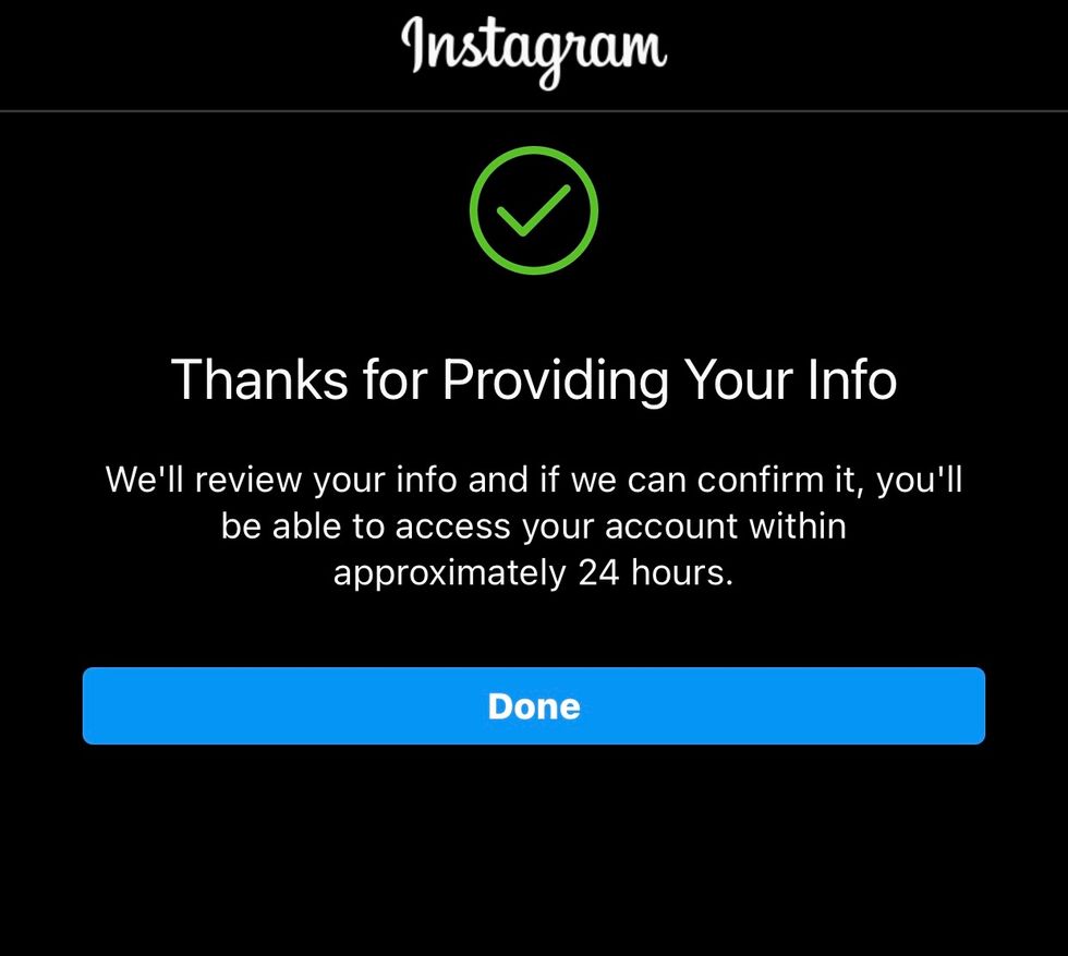 Suddenly, my account logged me out. When I logged back in, it asked me to confirm my email, phone number, and complete a captcha. I knew something was wrong but never expected what happened next. After completing everything, I had a message that informed me if Instagram could confirm my identity, I would have access to my account within 24 hours.