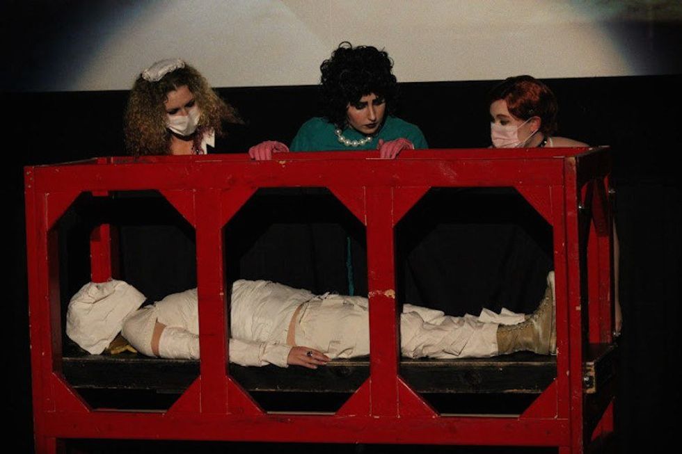 As it was Halloweekend, the opening festivities went on for a while. The supporting cast and crew hosted a costume contest, recreated several internet sketches (such as "Goofy Sings Evanescence" and "Clitter") and lip-synched to the Spice Girls. Then, it was time to humiliate that night's virgins. I had chosen not to mark myself as a virgin that night, but those who were chosen were then forced to imitate their favorite cartoon character having an orgasm. A man in drag won that for his impression of Maleficent, and therefore was cast as Betty Monroe for the first scene.