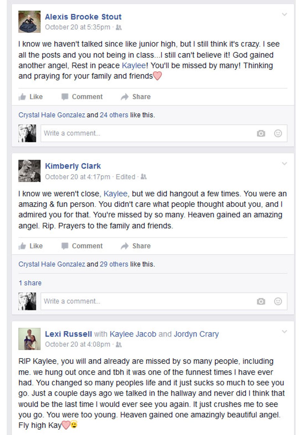 I honestly am not entirely sure why I have written this article. I think it is partly for me to try to release some of what I’ve been holding in for days, partly to honor Kaylee and her life, partly to show that, at the end of the day, closeness does not dictate whether I loved her or not (because I’m sure others have felt this way), and partly to give my family and myself some peace of mind. I’m not sure that there is a huge point to it; it would just feel wrong to write about anything else right now. It is as messy and as directionless as my emotions have been, as death is. This is a part of my grief, getting it out in the only way I know how. Rest in peace, Kaylee.