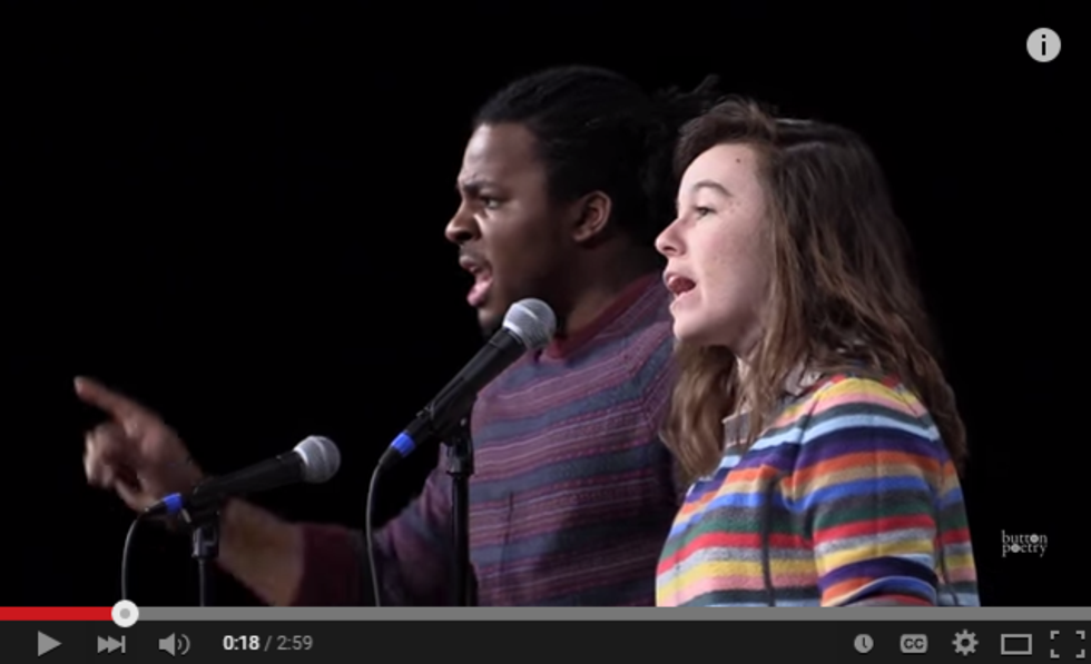 In a society filled with discrimination and hardship, two Eastern Michigan University students, Scout Bostley and Darius Simpson, show their audience what it is truly like to be discriminated against. They came together and delivered an incredible performance at the 2015 College Union Poetry Slam, and the video of it has quickly gone viral with over three million views on YouTube.