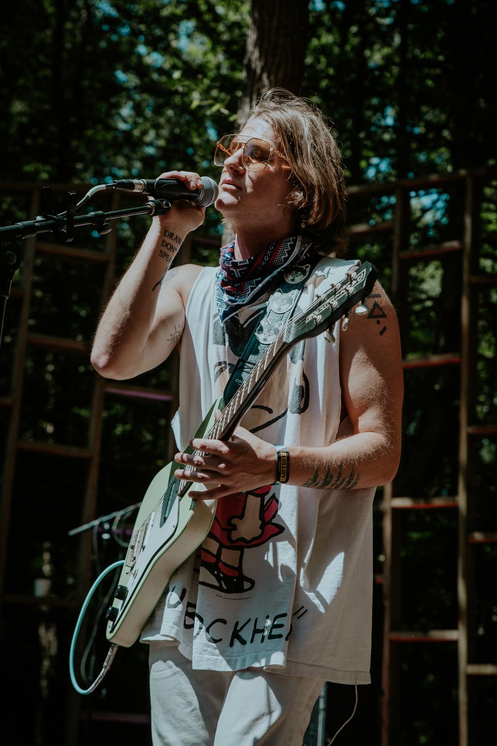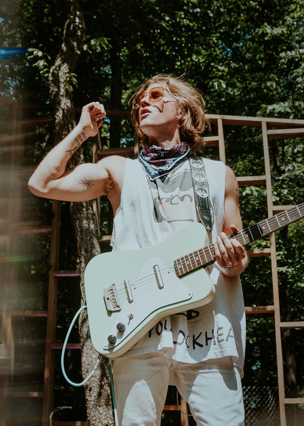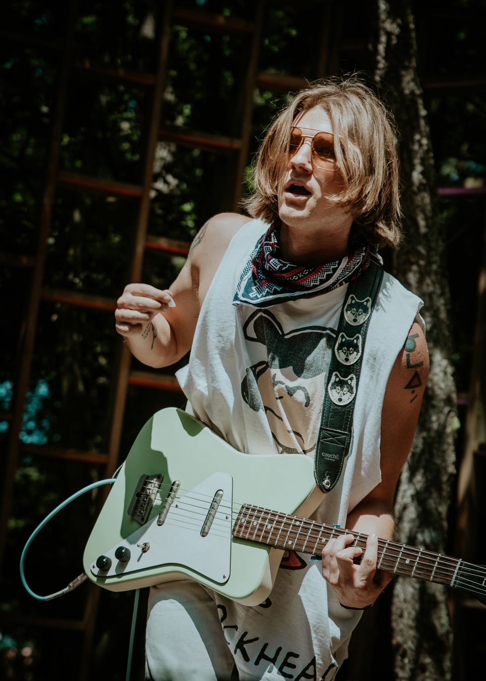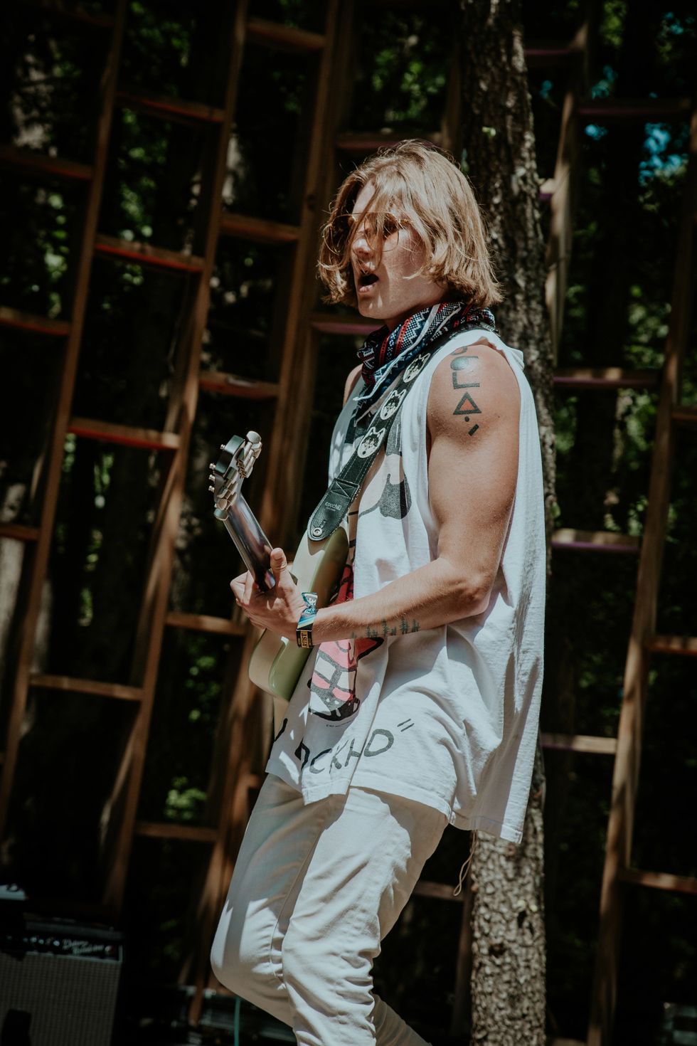 When Lostboycrow stepped on the Treehouse Stage on Firefly Music Festival's last day, the mood was electric. He transformed the forest as if it was bathed in the sunset of the Santa Fe desert. Lostboycrow began as a solo project and has evolved to a full band, but has always been "An idea that pays homage to new beginnings and a poignant heritage." Born Chris Blair, he first began releasing music as Lostboycrow in 2015 with "Adolescent" after recently moving to Los Angeles from Oregon. Through four EPs and a slew of singles, Lostboycrow experimented with a wide range of synth-based musical styles while drawing inspiration from traveling to various places. His debut album, Santa Fe - released earlier this year - shows a more refined artistic intent, partially due to focusing on one place while creating music. The new era brought many changes - most notably, less emphasis on synthesizers and more emphasis on raw instrumentals with a full band (Boaz Roberts, Tim McNalley, and Cole Petersen). But throughout the changes, Lostboycrow has remained authentically himself both on stage and off, staying open to new beginnings and true to the poignant heritage he started with.