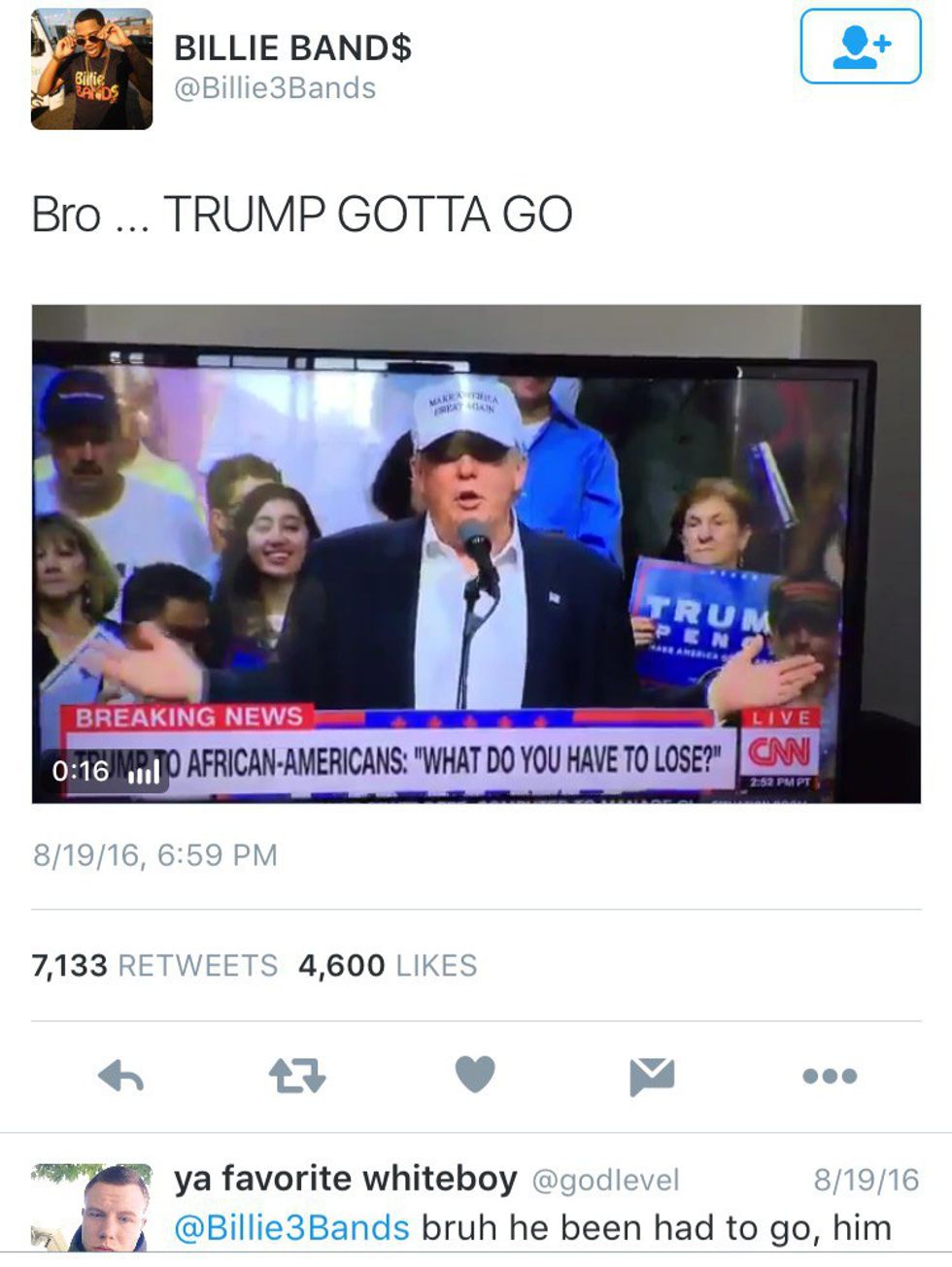 Currently and even in the last election with President Obama, there is not a day or even an hour that goes by where you don't scroll through Twitter, Facebook, or even Instagram and see numerous post either outlandishly bashing one canidiate, or overtly glorifying the other. Voicing opinions isn't the problem, for we are all entitled to our first amendment civil liberties, and are certainly endowed by "certain unalienable rights". Well we should be, but ask the black community and thats not the case. That's another article for another day though...