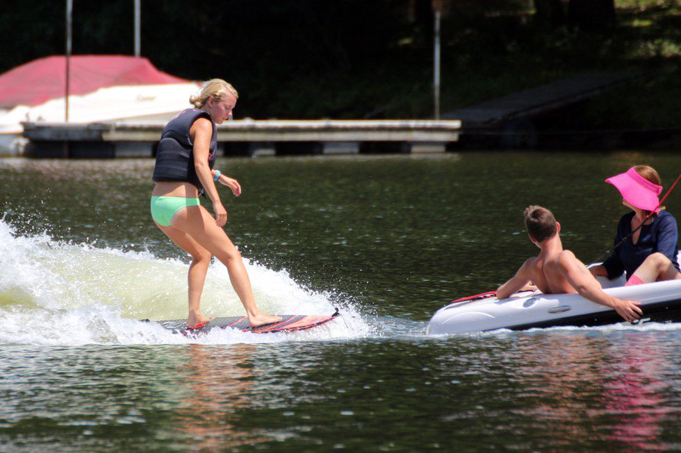 When the water is too choppy to ski, you can always break out the wakesurf or wakeboard. In recent years, it's gotten more popular and you can usually see a couple boats on the lake doing it.