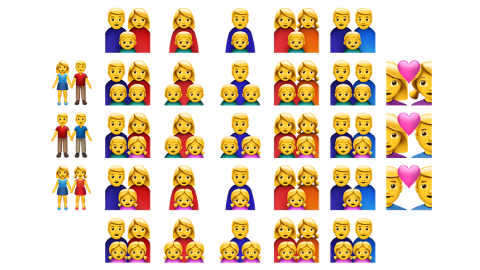 What the actual heck? Did we go back in time or what? Why do these emojis look so terrible now? What happened to the cute little emojis! And hello why is the gun a water gun now?! And even though I do hate some of them with a burning passion there are some new ones including, single parents, homosexual partners with children, churches and women weightlifting.