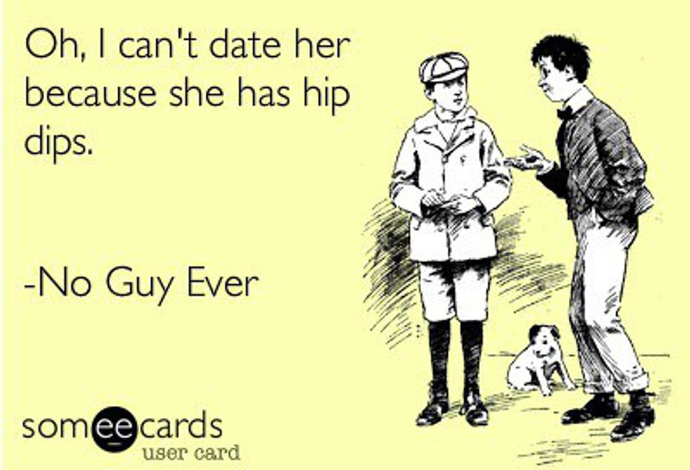 Know that you're not alone and that you aren't a freak and you aren't deformed. It's natural. Think of it this way; everybody has cheekbones, right? Well, some people have higher cheekbones than the rest of us do but we all have them. It's normal. I'm not going to say the entire population has hip dips, but if you have a skeleton in your body, hip dips are a possibility. They're more common than you think. So start loving your body the way it is.