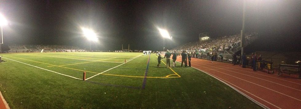 There is something so amazing about a cool fall night under big stadium lights. Friday nights are Pennridge football nights here in my hometown. Students, families and community members all come together to hear the band play, see the cheerleaders and dance team perform, and of course to watch our own hometown stars. I will never forget a 2012 game against North Penn, #45 Kyle Bigam, a senior, had caught a pass at the last second making a touchdown and the new score 21-28 Pennridge. The whole entire student section stormed the field in celebration.