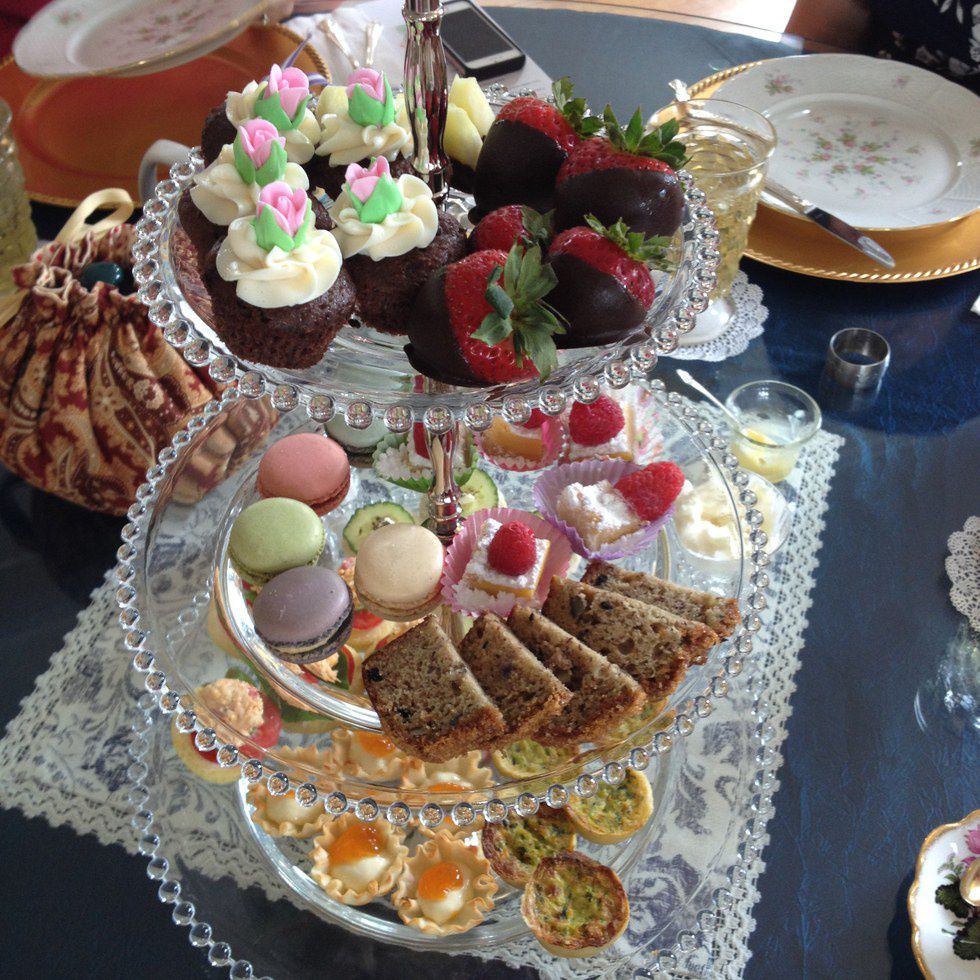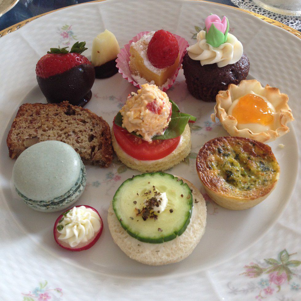 Then came the third course, a three-tiered tray full of savories and sweets. Mini quiche, tomato and pimento cheese, cucumber sandwiches, chocolate covered strawberries, and french macaroons covered each tray. I ate everything, disliked nothing and loved the savories best. The classic cucumber sandwich and the tomato and pimento cheese were possibly my favorites, although it's difficult to choose.