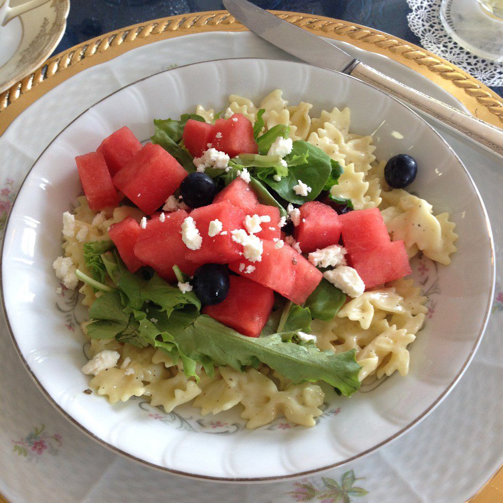The second course was pasta watermelon salad, which included a creamy sweet sauce, mixed greens, blueberries, and feta cheese crumbles. I could have eaten that for days, and if i had the recipe for that sauce, people would never see me again because I would be too busy eating nothing but pasta watermelon salad all day every day.