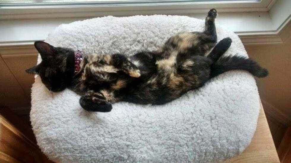You are beautiful. I'd never seen a Tortie until you. Your black and orange fur in gorgeous. Everyone who meets you, or is subjected to one of my many pictures of you, comments on your looks. The white stripe on your sweet nose is absolutely endearing, and your little paws are perfect — two black, two orange. Your eyes are about five different colors, and you always look like you know more than everyone else in the room, which is probably true. At least about me. Sitting in the window sill, you appear majestic and regal, and you have the facial expression to match.