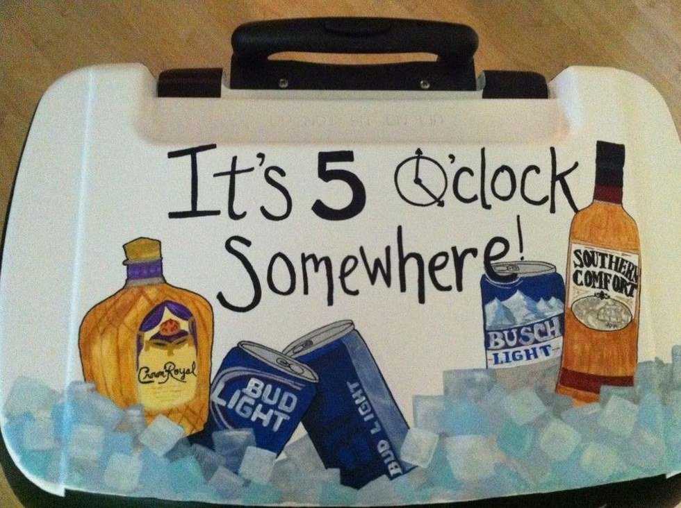 Cooler, I just wanted to apologize again for trying to free hand that Budweiser label on your top. I should have listened when everyone told me it would be too difficult for someone who isn't artistic, like me, to draw… and while we are on an apologetic note I also want to say sorry for riddling your sides with horrible frat-tastic phrases like, “Frat hard. Frat often," and “Dressed up to get messed up." Although in my defense, I dressed you in some memos of encouragement as well.
