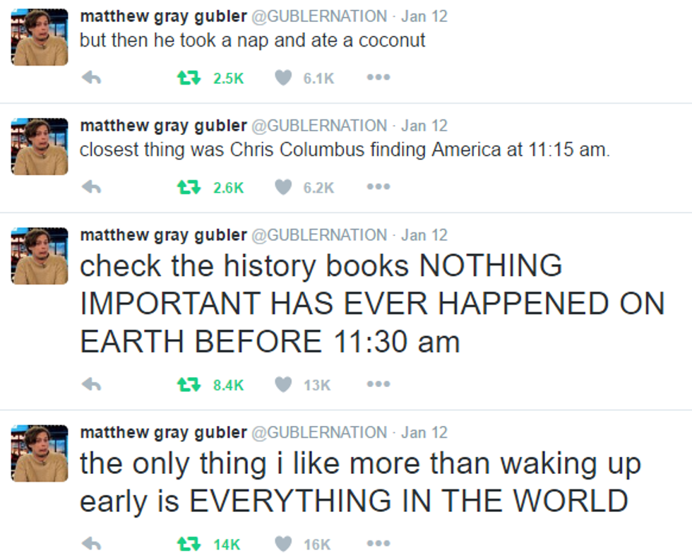 For anyone who likes to sleep, his rant about waking up early is absolutely the most true thing in the world.