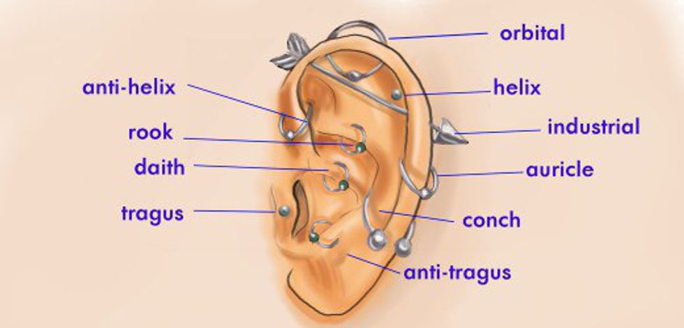 Okay, now that we got that out of the way, let's talk about piercings. Here is a diagram of types of ear piercings that if you are autonomically correct can receive.