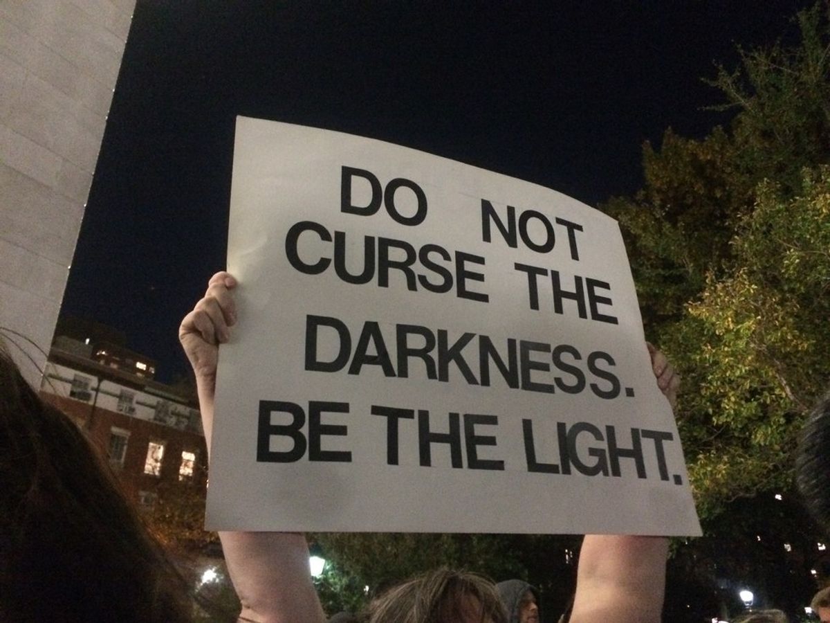After Trump's win, many people were afraid of the hate coming from both his supporters and his opposers. Hundreds gathered in Washington Square park to encourage and validate those feeling marginalized. People arrived with signs, snacks, flags, and a unifying belief that love will always win, and that the fight for equality and acceptance will continue on.