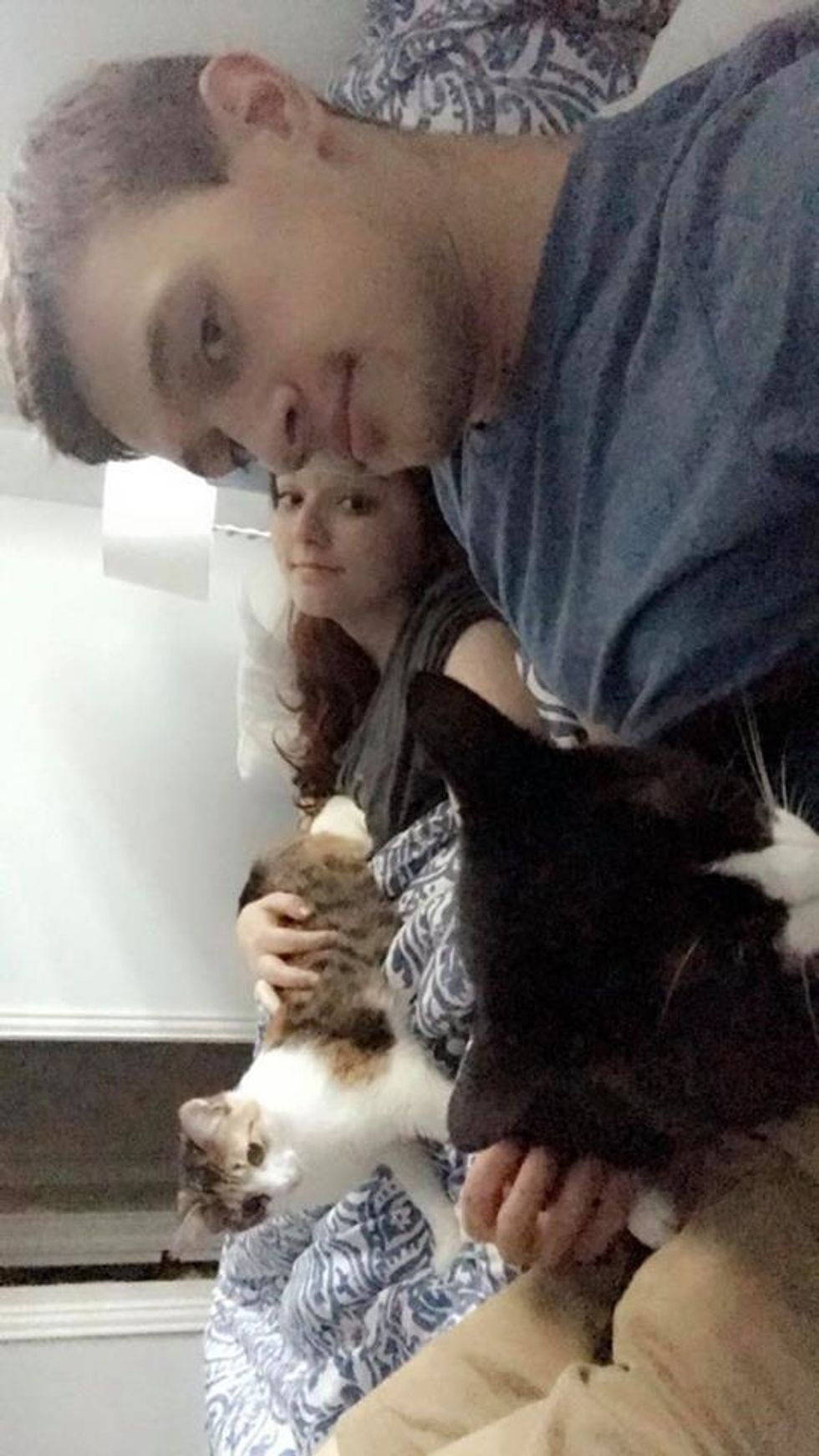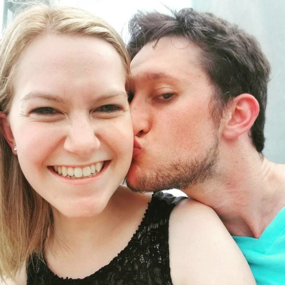 "I had just gone through a heart-wrenching long distance break-up two months prior. That night, my Mom encouraged me to go hang out in the common room of my dorm instead of just sitting in my room. So, I baked some gluten free banana cookies. I read while they baked (... '50 Shades Freed') and, while I was reading, a flash of red skated by. That flash of red ended up being a tall ginger boy. For a few hours, I chatted with him and his roommates and played 'Mario Kart.' It turns out that he skated by because he got locked out of his room while doing laundry. Later that week, he texted me to ask me on a date. I was nervous to open myself up again, but my Mom encouraged me to say yes. We walked in a light snowfall to dinner and ended up chatting for, like, six hours afterward. Two and a half years later and here we are, deeply in love. He is my nugget. — Amanda
