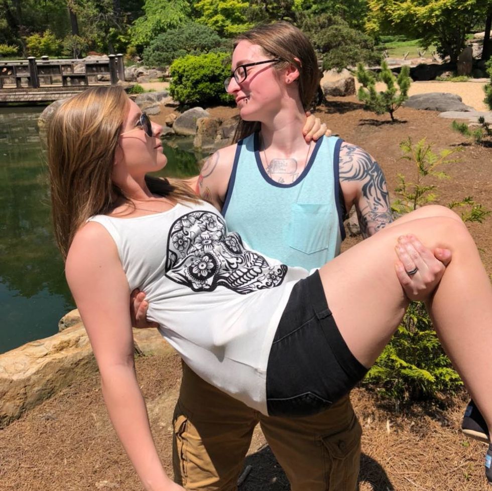 "I was in New Hampshire visiting a friend. When we were leaving brunch, her coworker was crossing the street at the red Light we were stopped at, so I asked him if he wanted to go on a hike with us. We spent the whole day together and the rest is history." — Gabi