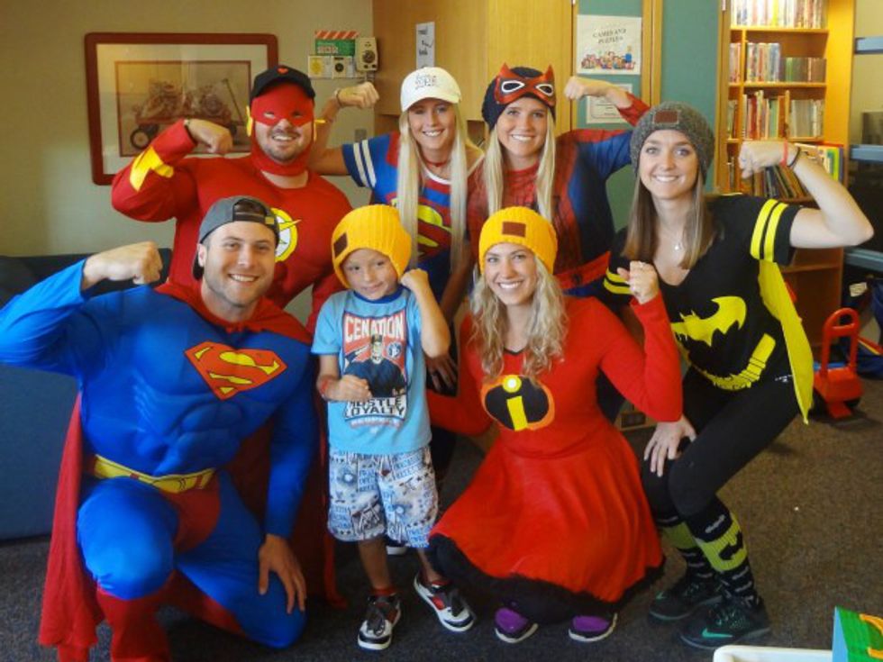 When we reach 50 points, we receive a promotional package from which we hand out free merchandise to the community. But here is the cool part: when we hit 100 points, we receive superhero costumes and free beanies! So now, we can dress as superheroes and do a household visit, which is a visit to the home of a child with cancer, and give the child and their family the beanies. The more points a campus crew accumulates, the more household and hospital visits they can do! Once you hit the mother load of points, you can take a child with cancer on an adventure, such as a helicopter or plane ride. How cool!