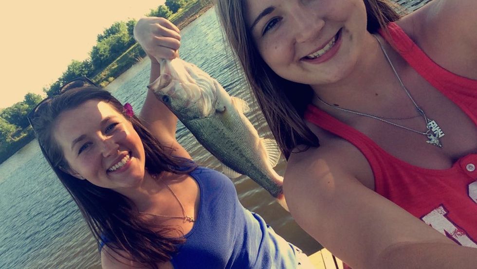 After I unpacked, Colton's girlfriend Faith and I promptly threw on our swimsuits and ran to the pool. The day was easy, breezy, and beautiful. The pool was perfect, and the conversations were great, but my favorite part was fishing later that day. We walked down to the lake, grabbed two poles (I chose the pink one, of course), and cast out. On that first cast, I reeled in a seven, eight, or nine-pound bass. At this point, you're probably thinking—wow, this girl has no idea what she is talking about. But to the contrary, I know that every good fish tale is exaggerated, so I purposefully wanted to leave a little to your imagination. But for the record, we'll just say it was a 10-pound bass (insert wink here).