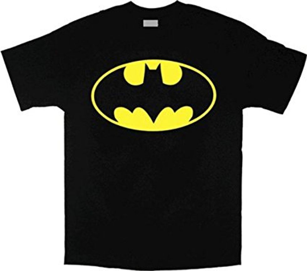 You can easily adapt any super hero t-shirt that you already own and dress it up for a costume (black t-shirts are traditionally easier to match with so I'm using Batman as an example). Just wear black pants or a skirt, black shoes, and if you're really feeling bold, use a dark towel for a cape and either paint on or buy a black mask.