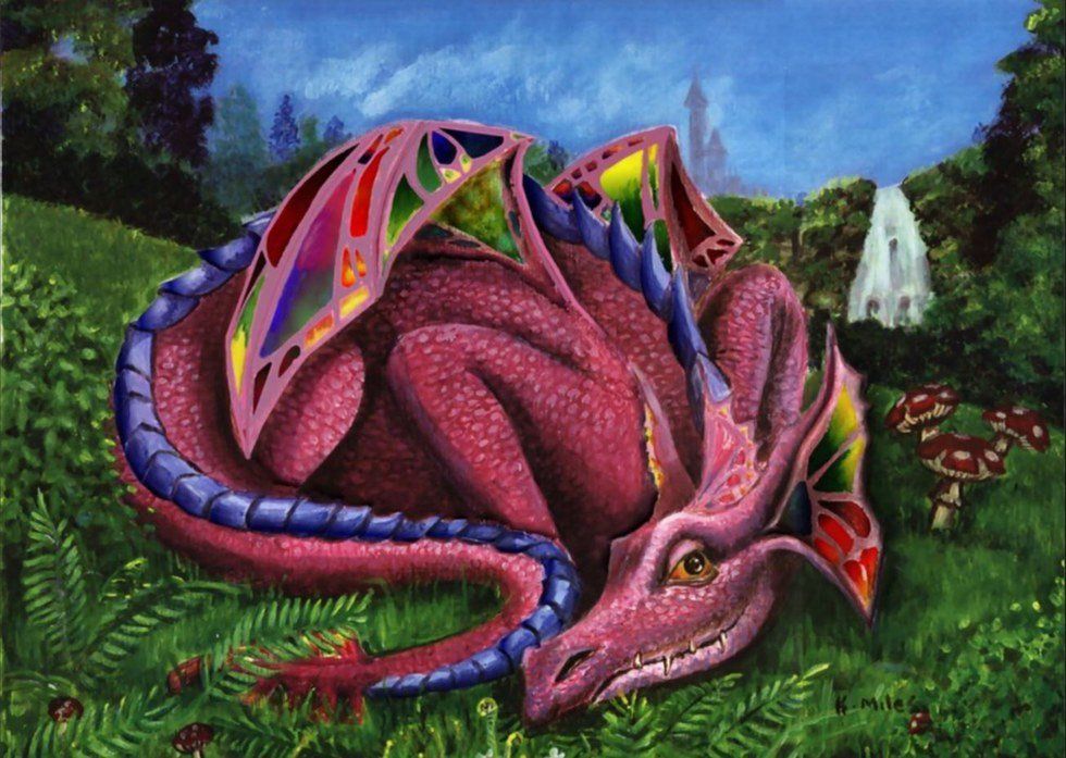Soft fins, each around a yard at its base, run from the tip of her tail to the crest of her head. These fins color themselves vibrantly dependent upon her mood. Displeasure turns them green; love turns them red; fear turns them blue; happiness turns them purple; anger turns them yellow; excitement turns them orange. The list goes on, for there are many emotions in this world, as well as many colors to match them, but these colors, I know best. Her pines are often red when I see her because this magnificent beast is the most loving creature I know. She loves the moon; she loves her friends; she loves the lake; she loves herself. Most of all, she loves the sky.