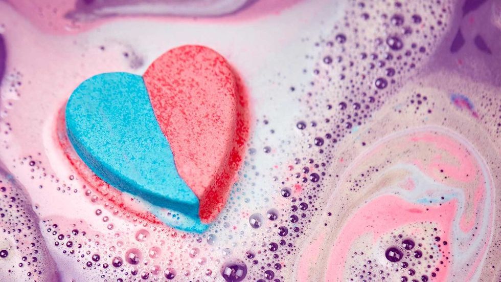 "Inner Truth" is a pink and blue heart shaped bath melt in which the product's colors were inspired by the transgender flag.