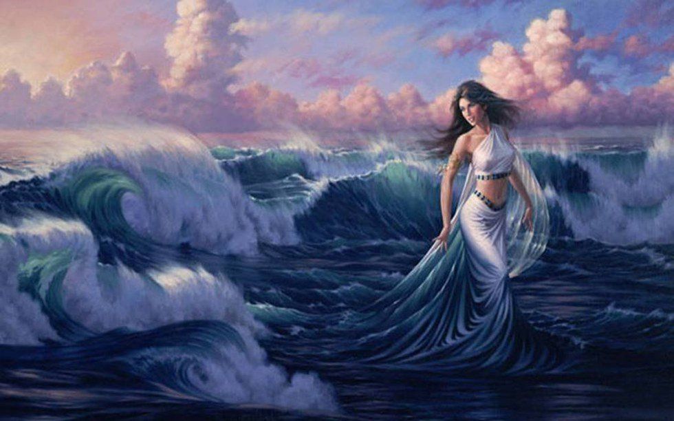 the nymphs that raise the waves to the hand of Poseidon’s trident