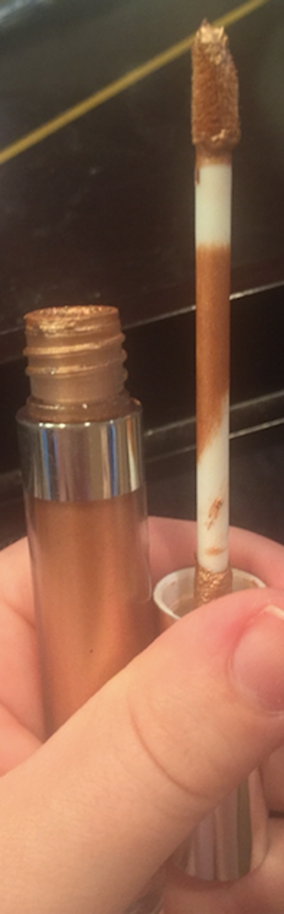 Use a yellow or gold lipstick or lipliner to draw a semicircle on the upper lip. Clean up the edges with a Q-tip or a lip brush if necessary.