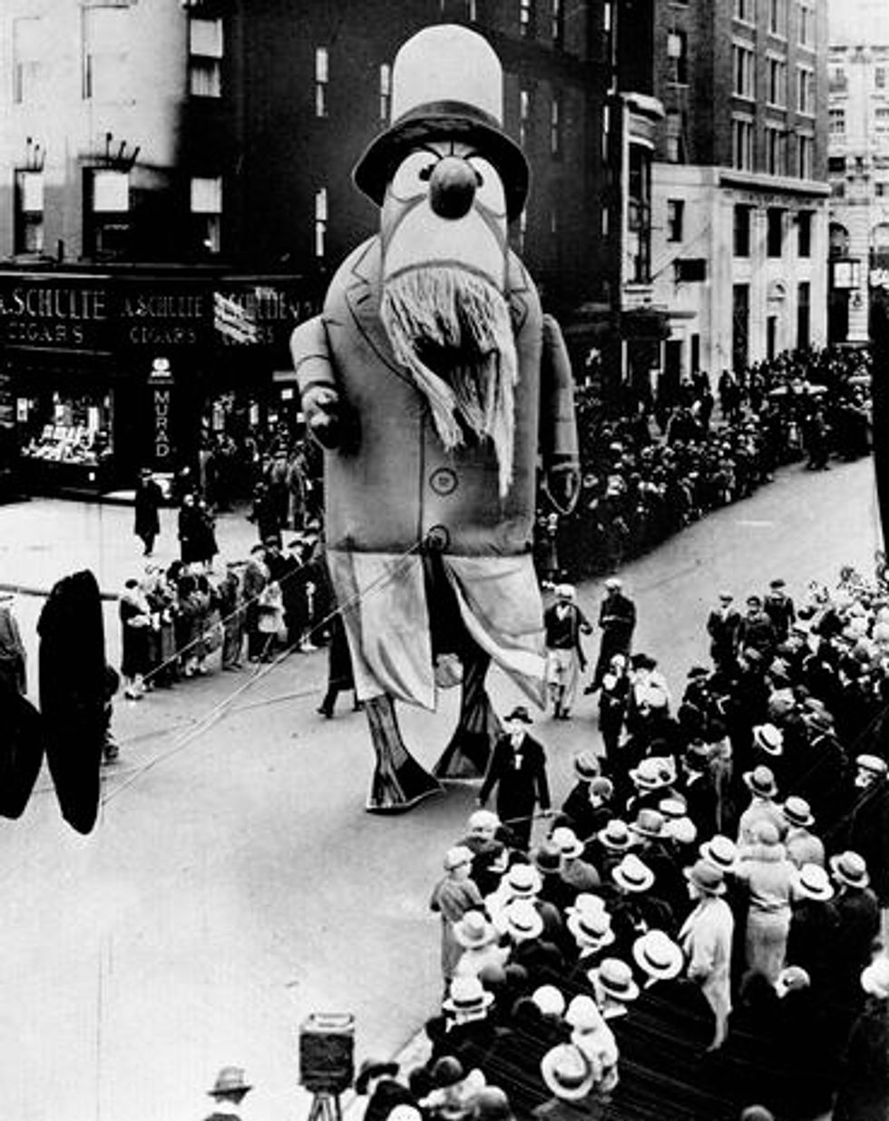 1934 was the year that Tony Sarg first collaborated with Walt Disney and they introduced Mickey Mouse, Pluto, the Little Pig, and the Big Bad Wolf to parade goers.