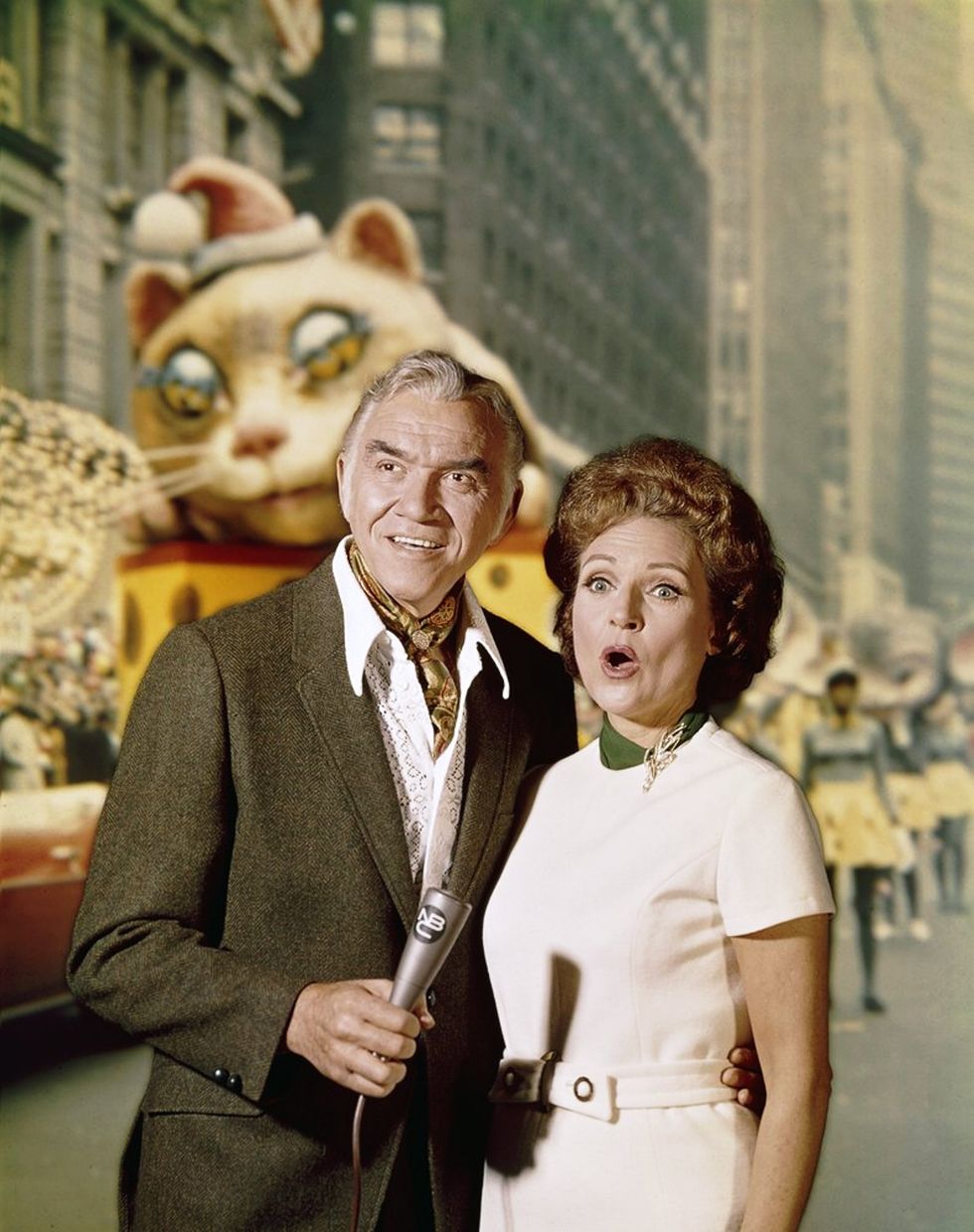 From 1962 to 1971 Betty White and Lorne Greene host the television broadcast of the parade. Tony Bennette also first appears in 1962 and eventually returned in 2001.