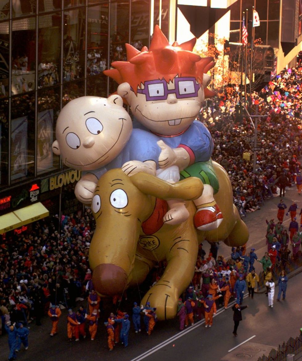 By 1993 Tommy, Chuckie, and Spike, from the Nickaloden cartoon, "Rugrats" join the parade. Being the parade's first ever three person balloon.