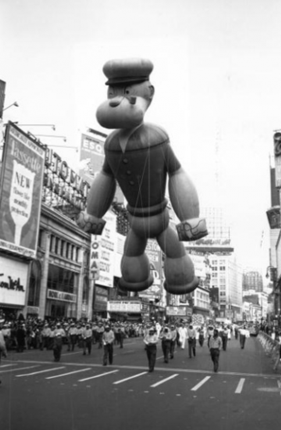 In 1961 the Popeye the Sailor balloon was flying around the city when the float suddenly dumped water on the crowd. Popeye's hat had apparently become full with water from a heavy rain the night before.