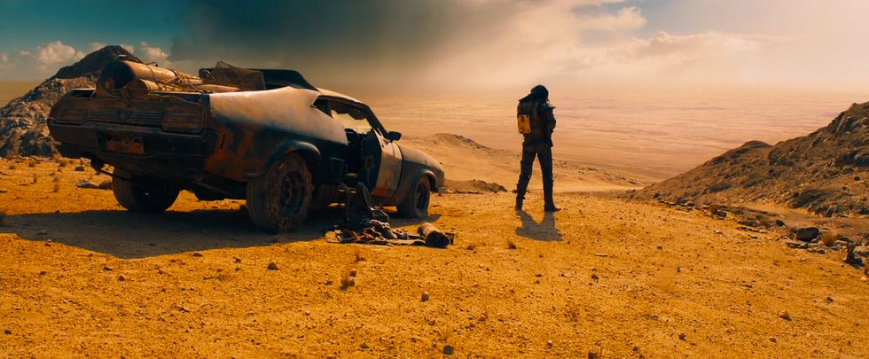 Coupled with a deep blue horizon, the first frame of this incredible work by George Miller reveals the color scheme used for the entire film. It’s clever that he does this, using one frame to display tones that foreshadow his use of sunlight and darkness in the scenes to follow.