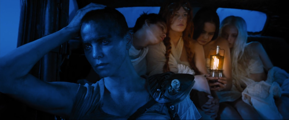 The film becomes almost unrecognizable; the red hues pulsing in the faces of Max (Tom Hardy) and Imperator Furiosa (Charlize Theron) are gone, replaced with dark blues that create a much more ominous environment. The intense fighting scenes at night reflect this, the energy and mood of every scene is dictated by these very calculated and intricate color schemes, which cycle throughout the movie.