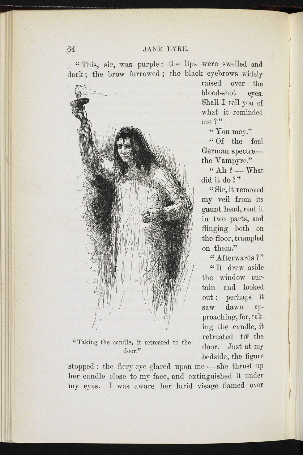 I wanted to understand Bertha Mason from the medical perspective. Charlotte Bronte gives vague clues in her descriptions of Bertha. It is clear that the Brontes not only had access to but were highly interested in medicine, as evidenced by the well-used Modern Domestic Medicine that they kept in their house, as documented by the British Library. It seems likely that this was Charlotte Bronte's source for Bertha Mason's symptoms, as it is unclear whether or not she would have encountered someone with any of the illnesses Bertha Mason may have had. In their paper "Did the 'Women in the Attic' in "Jane Eyre" have Huntington Disease?," Elizabeth A. Coon and Anhar Hassan explore the various possibilities. It is clear that the disease is hereditary, as Mr. Rochester says: "...she came of a mad family; -- idiots and maniacs through three generations!," and describes her mother as "a mad woman and a drunkard!" This follows the three tenets of Huntington's Disease, a degenerative nerve disease, as established by Dr. Huntington himself. According to Huntington, the disease is hereditary, sufferers of the disease have a tendency towards insanity and suicide, and the onset of the disease usually occurs in adult life, all of which apply to Bertha Mason. Huntington's is also characterized by abnormal movements, which follows Jane's descriptions of "movements of the wild beast" and a figure moving "backwards and forwards...wether beast or human being." Onset of Huntington's is also fairly rapid, which corresponds with Mr. Rochester's description of Bertha's illness: "'her character ripened and developed with frightful rapidity.'" Coon and Hassan's article concludes that Bertha did have many features of Huntington disease. However, they do address "other diagnostic considerations" for the symptoms displayed by the character, such as Huntington-disease like 2 (HDL-2), a similar illness that is inherited through the mother and is much more common in those of African descent. This may fit Bertha's characterization more, as it is known she inherited the disease from her mother, who was Creole, while her father was a European settler. Coon and Hassan also propose psychiatric disorders such as bipolar affective disorder and schizophrenia, which also run in families. Mr. Rochester's description of Bertha having "lucid intervals of days to weeks," and then violent outbursts correlates with hypomanic and manic periods of bipolar disorder, while inappropriate emotional reactions, such as Bertha's "curious laugh-distinct, formal, mirthless," are common symptoms of schizophrenia. Though much less likely, the authors also consider porphyria, a disorder in which there is an overproduction of a protein that assists hemoglobin in the bloodstream, or Graves' disease, an immune system disorder in which the thyroid overproduces hormones, which both cause "bloodshot eyes," which Bertha is described as having.