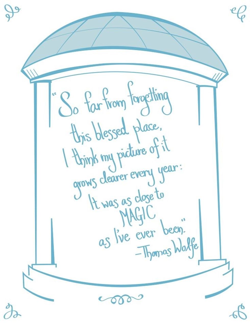 "Without even noticing, UNC seeps into your pores. By junior year, she's in your blood. You can't remember a time when you didn't have moments on campus where you lose your breath for a second and all you can think is, 'Wow, I love this place.' ...And then UNC tells you to leave. And it hurts."