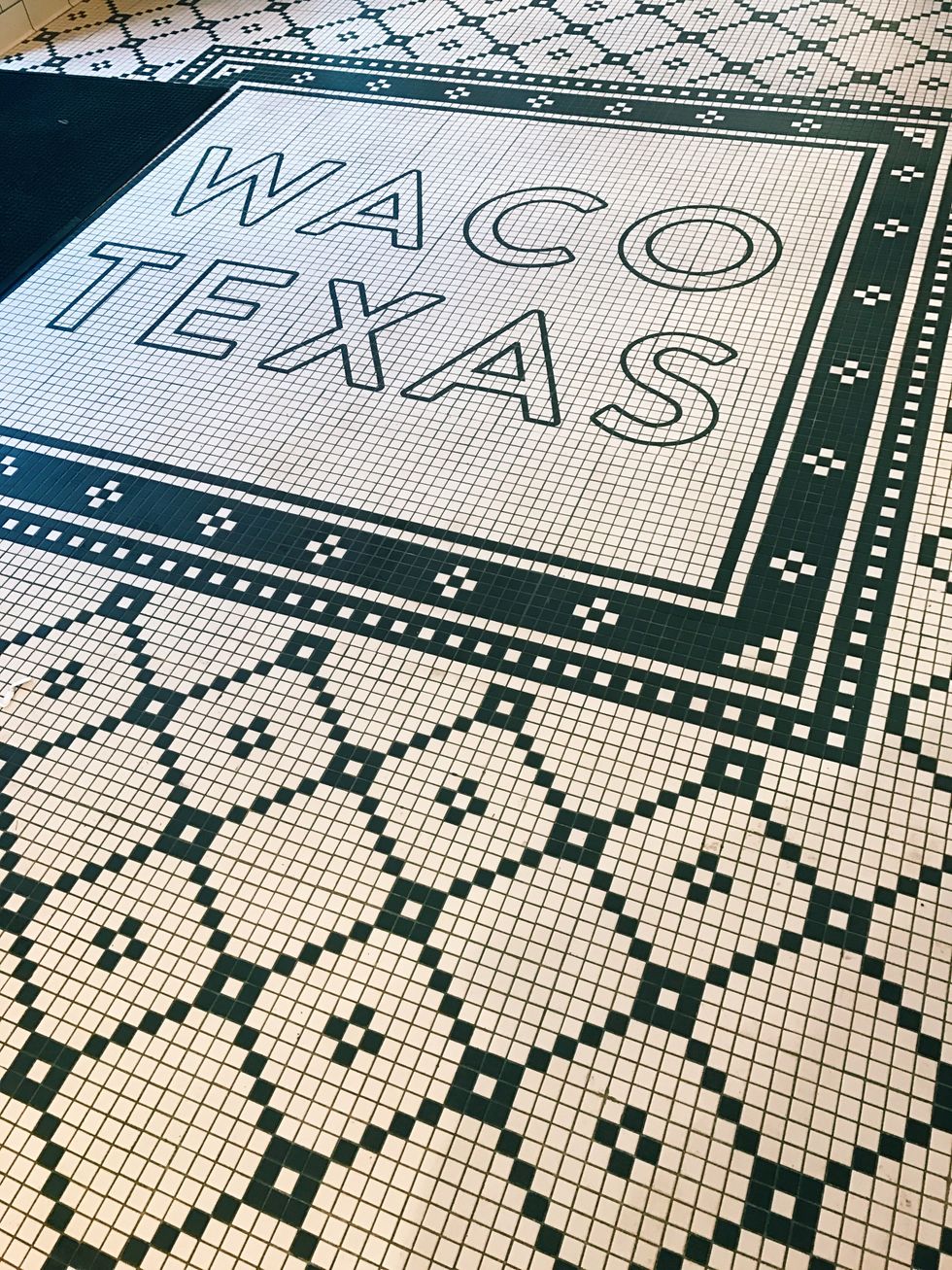 This black-and-white tile mural is located on the floor, and makes for a great photo-op.