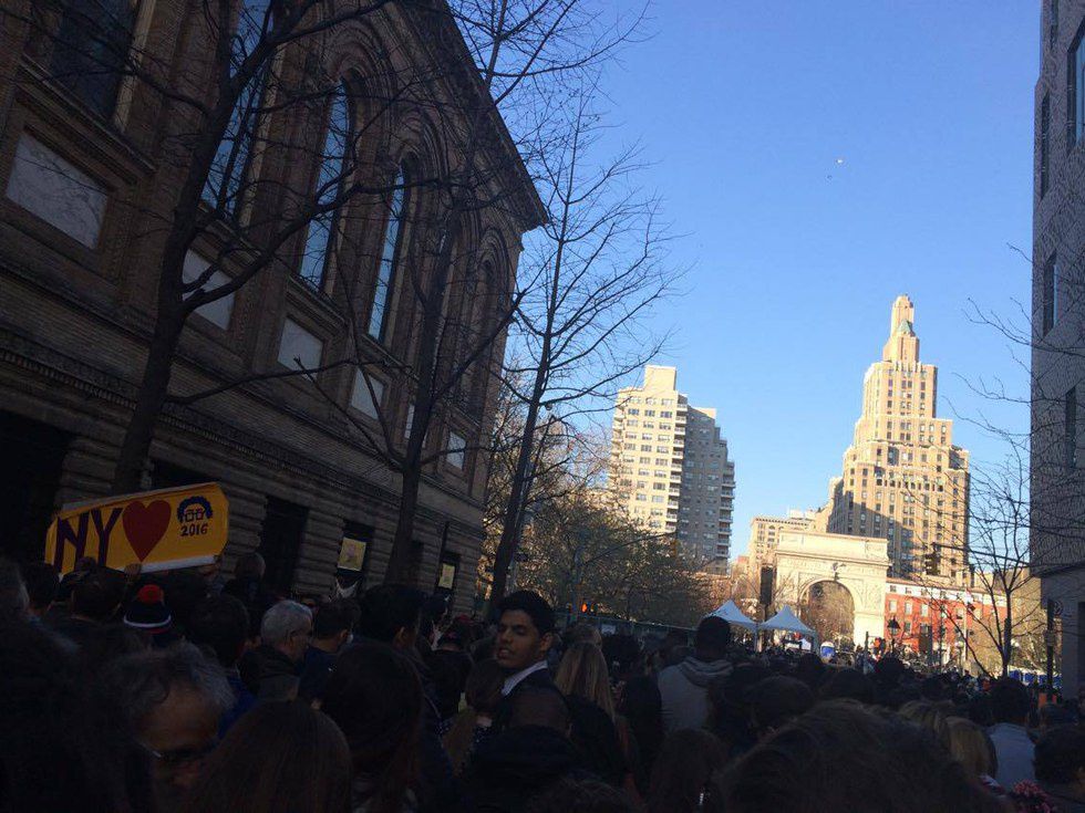 New York, New York: 31,000 people filled Washington Square Park in NYC on Monday, April 11th, to hear the words of what many would call "the millennial man."