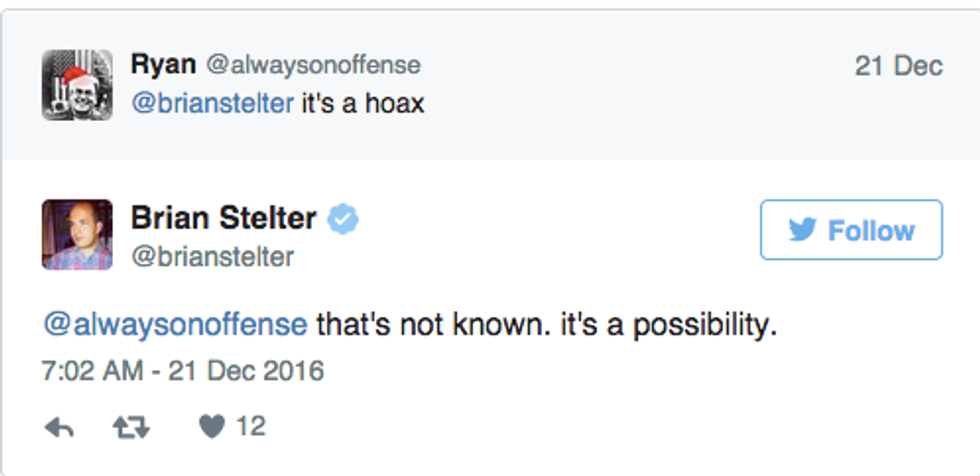 The CNN senior media correspondent jumped the gun by recklessly retweeting the controversial Youtube video. Just weeks earlier, the host of Reliable Sources has used his program to wage war on fake news. It's ironic cause Stelter regularly urges news organizations to proceed with caution in cases such as these, failed to practice what he preaches by not googling Saleh to discover his history of posting similar videos. In an interview published by "The Hill" Fox News anchor Tucker Carlson gutted Stetler for his irresponsible internet behavior; “He’s the guy always jumping up and down about how other news organizations are irresponsible,” Carlson said. “And before you tweet something out you oughta check, and double-check. ‘That’s journalism! Double-checking!’ To make certain it’s true. It seems like he had a hand in disseminating a hoax!” Stelter shows the reality that this tweet went viral because of the same exact people who've been freaking out about fake news for the last month.