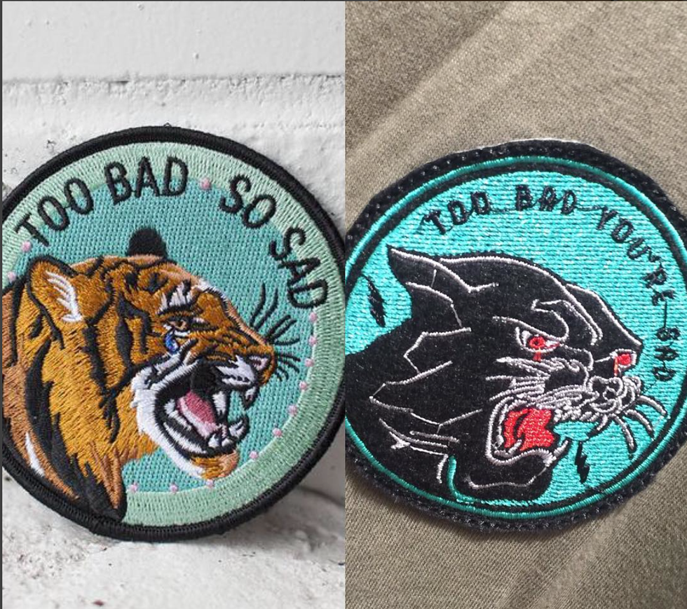 The image below shows the original Stay Home Club design on the left and the stolen one on the right. Not only is the one on the right cheap looking, but the company's sewing skills really need some work.