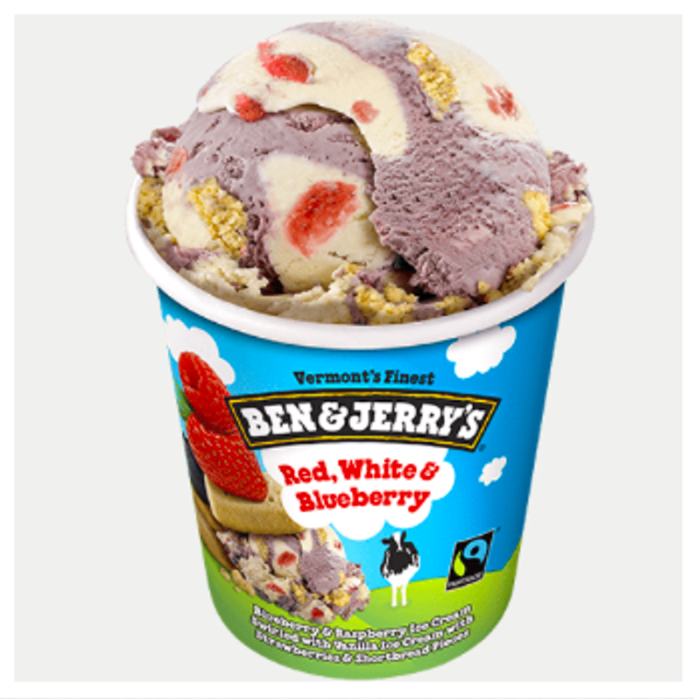 This blueberry and raspberry ice cream is swirled with vanilla ice cream, strawberries, and shortbread pieces. This ice cream SCREAMS red, white, and blue, just like a political science major. Political science is a salute to America and all things government, just as Red, White & Blueberry is a salute to glorious taste.