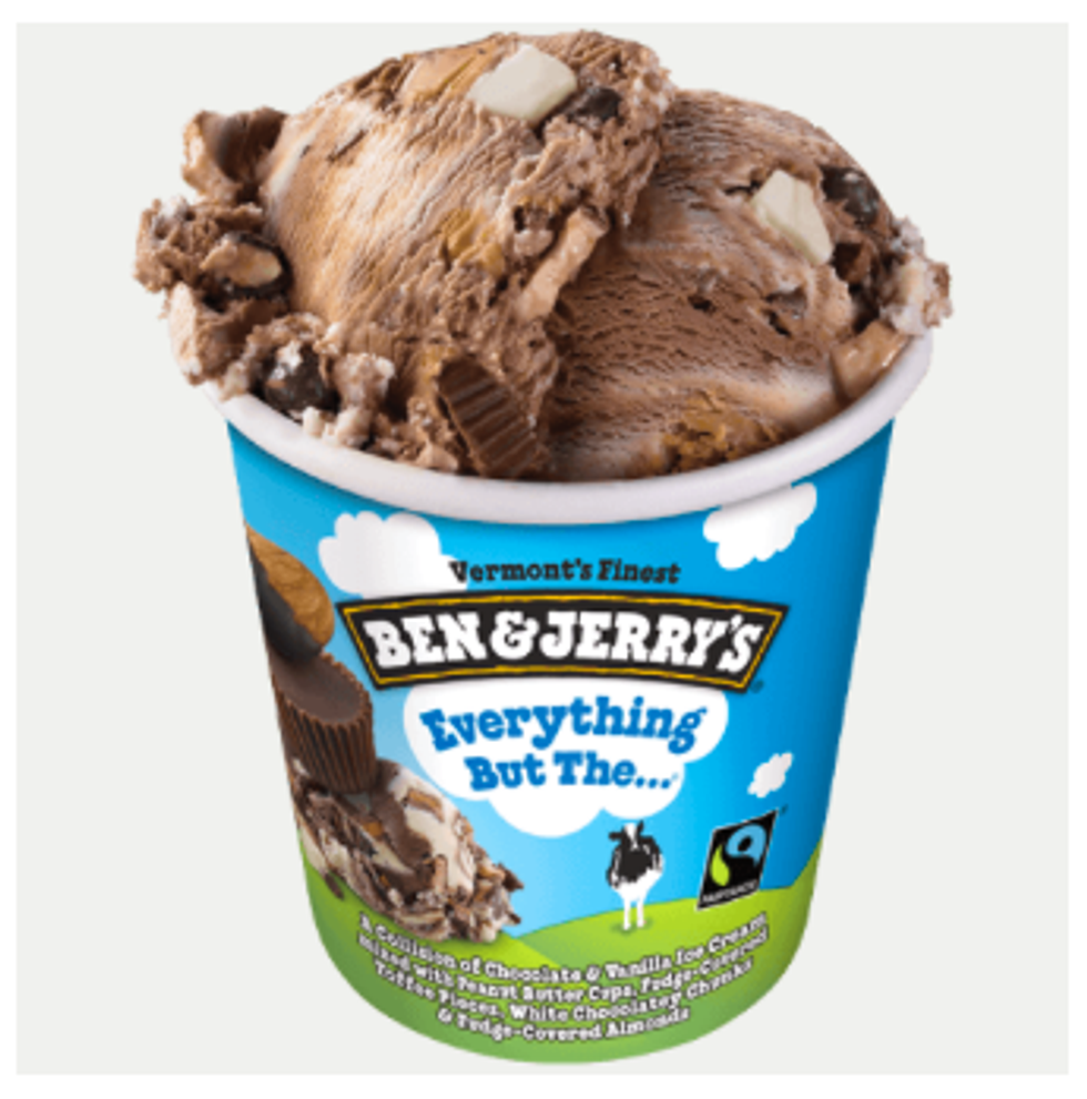 This ice cream has everything - literally. Peanut butter cups, fudge-covered toffee pieces, white chocolatey chunks, and fudge-covered almonds swirl together into a glorious collision of chocolate-and-vanilla ice cream. It's a lot, but it's perfect. It's art. Art majors learn how to experiment and bring new things together to create beauty, and this ice cream does just that. It's a crazy, different combination, but that's what art is all about!