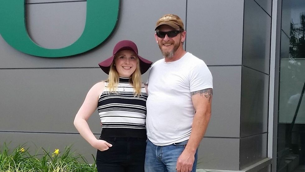 My dad is covered in tattoos, he would be anywhere I needed him to be within 24 hours, he has sat on the phone with me while I cried, and he makes me laugh constantly. He loves and cares for people more than I would have ever known. He is truly vulnerable and shows a tough exterior. He owns a *legal* marijuana farm that he built from the ground up and he has helped me buy what is about to be two cars. He works extremely hard which often results in him not being able to be where everyone would like him to be.