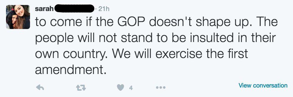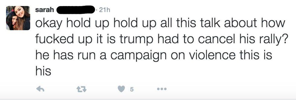 All of this to say, Trump supporters aren't necessarily violent people who support the Nazi Party and the KKK, as a recently viral SNL skit suggested. Trump is outspoken and voicing many Americans opinions in a passionate way. He's listening and he's being heard. But he's feeding into and promoting violence. He's exploiting people's fears. You might agree with his position on illegal immigration and the Department of Education, but politicians should never promote putting innocent lives on the line or suggest such a thing.
