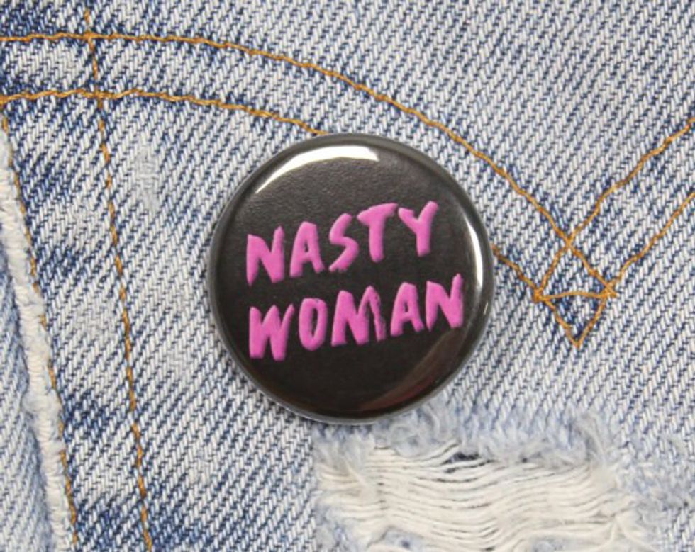 10. Nasty Woman button, $2Dress up your denim jacket (or presidential blazer) with a nasty woman button, and a bad hombre pin to match!