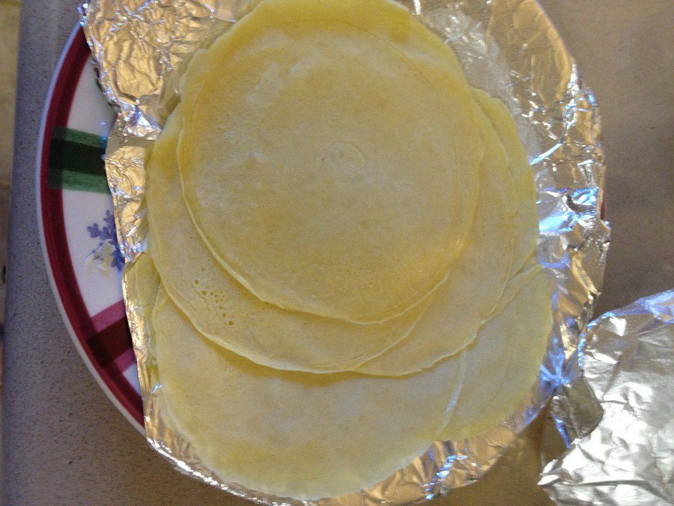 Place the crepes on top of aluminum foil to keep them warm and moist until it’s time to eat.
