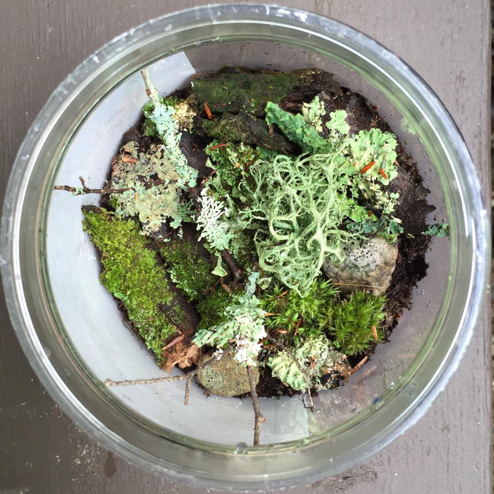 Materials (All can be scavenged!): Transparent container, plants, moss, lichen, pebbles/gravel, soil, decorations.